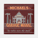 Este ímã quadrado engraçado e personalizado é perfeito para decorar sua geladeira de cavernas. Ele diz, "[Seu Nome] Garage Mahal" e mostra um esboço do Taj Mahal com martelos, chaves de fenda e um pequeno carro que parece estar estacionado no meio. Adicione facilmente seu nome ao topo. A linha "as regras sobre as ferramentas" também pode ser alterada. As cores são vermelho, cinza e laranja claro.
