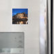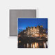 Fotoímã de Souvenir com as antigas casas românticas da cidade de Amsterdã, construída ao longo do canal de Prinsengracht, com reflexo das luzes na água tranquila do início da noite na capital da Holanda.