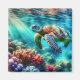 Magneta com tema de tartaruga. Uma ilustração ai de uma tartaruga marinha nadando no oceano.