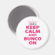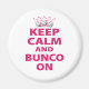 Fique calmo e Bunco no Design. Design gráfico divertido que será um sucesso no seu próximo evento Bunco. Compre um como prêmio ou presente. Possui uma coroa e três dados. Você pode alterar a cor do plano de fundo na maioria dos itens.