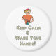 Mantenha Calma e Lave Suas Mãos design contém a mensagem de conselho e um gráfico de uma pessoa sensata lavando as mãos - fique calma e pratique boa higiene de mão!