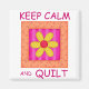 Mostre o seu amor por colchar com este bloco colorido, divertido e colorido, proclamando "Mantenha Calma e Quilt". Este design é uma arte original em forma de colcha com um bloco colorido de retalhos de flores de apiqué. A palavra "colcha" é fácil de mudar para outra palavra da sua escolha. O design de colcha está em cores vibrantes e dinâmicas de laranja, amarelo e rosa para uma bela paleta colorida. Totalmente personalizável para personalizar. Quilt art é a arte original da designer de tecidos e colchas Phyllis Dobbs. Esta arte está disponível em outros produtos e em vários planos coloridos e também está disponível em mais produtos Keep Calm com diferentes cores. Mais produtos estão disponíveis na loja BusinessWithFlair da Phyllis.