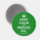 Com base no original "Manter Calmo" e ... poster deste íman verde e branco "Calm" e "Reduce" o CO2 apresenta uma fonte personalizada que corresponde ao original.