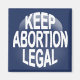 "Mantenha o aborto legal." Texto azul/branco em círculo, em t-shirts, botões, autocolantes, presentes.