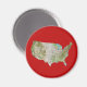O design neste ímã apresenta um mapa dos EUA com um fundo de cores de bandeira. Adicione um pouco de sabor americano à sua casa.