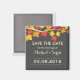 Imã salve a data com folhas caídas. Perfeito para a recepção de casamento do outono. Cores vibrantes e brilhantes da temporada de outono. Personalizar a redação para qualquer ocasião com o tema do outono. Chá de panela, chá de fraldas, aniversário, festa de noivado ou qualquer coisa. Excelente como favoritos para festas também.