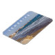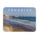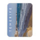Uma bela fotografia da praia e do mar perto da aldeia de El Médano, na ilha de Tenerife, nas Ilhas Canárias, impressa numa imã de geladeira de souvenir.