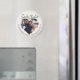 Ímã de salvar a data com fonte moderna em marfim apresentando uma janela de foto em forma de coração, fundo marfim suave e título com letra manuscrita. Este design coloca sua foto de noivado à vista, ao mesmo tempo em que apresenta claramente a data e o local do casamento em uma paleta neutra e refinada que se adequa a uma ampla gama de estilos de casamento. Ideal para casamentos, celebrações de destino, renovação de votos ou noivados elegantes onde um anúncio duradouro é desejado. Personalize facilmente com seus detalhes.