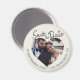Ímã de foto em marfim com escrita moderna para salvar a data, apresentando uma janela de foto em forma de coração, fundo marfim suave e título com letra à mão. Este design coloca sua foto de noivado à frente e ao centro, ao mesmo tempo em que apresenta claramente a data e o local do casamento em uma paleta neutra e refinada que se adequa a uma ampla gama de estilos de casamento. Ideal para casamentos, celebrações de destino, renovação de votos ou noivados elegantes onde um anúncio duradouro é desejado. Personalize facilmente com seus detalhes.