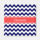Imã Marinho Azul Branco Chevron Coral Vermelho Nome Mo