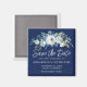 Imã Marinho Azul Branco Floral Inverno Salvar Data