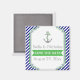 Marinho azul, listras brancas e ancorar o casamento náutico verde Kelly Salve o ímã de datas. Um design de padrão na moda com faixas de marinho azul, diagonal branca, âncora com um coração e corda de amor verde Kelly e cinza e texto branco em um quadro com faixa verde. Contemporâneo, mas com um olhar vintage, de certo modo. Você pode alterar o plano de fundo e a cor do texto escolhendo no gráfico de cores do Zazzle. Este design de classe é um modelo completamente personalizável e faz parte de um casamento perfeito para um casamento náutico ou praia de verão.