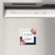 Este belo e elegante design de imã de água doce apresenta rosas vermelhas e cor-de-rosa vintage contra um fundo de alto contraste de bolinhas azuis marinhos em branco. No centro há um quadrado branco dourado com as palavras "Limpo" e "Sujo", separadas por um bar dourado fino.