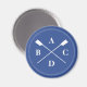 Um marinho inteligente e um ímã branco para um cortador afiado, isto tem espaço para você entrar em quatro iniciais. O design exibe os remos cruzados com um círculo branco duplo 'costura' ao redor deles, sobre um fundo azul marinho.