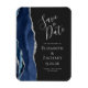 Esta elegante imã salve a data moderna apresenta uma marinho azul de aquarela agata bordada com falso brilho prateado. O texto personalizável está disponível em cinzas prateadas claras em um fundo de cinza de carvão negro.