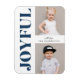 Na moda, moderno ímã de fotos de feriado com "Joyful" em uma letra de marinho ousada e de tendência ao lado esquerdo do ímã. Personalize o ímã de feriado bonito adicionando duas de suas fotos favoritas e seu nome. Projetado para coordenar com nossa coleção de feriados alegre moderna.