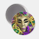 Íman Mardi Gras com máscaras mascarada de roxo e ouro com penas e miçangas.