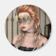 Renderização digital em 3D de uma mulher bonita com máscara de mascarada em um fundo retrohouse