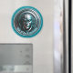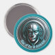 Uma imã de geladeira de ficção científica do excelente com uma máscara de robô azul arrepiante com efeito metálico. O texto diz "Aumento do domínio do AI", mas você pode alterá-lo se quiser. É uma ponta na direção de como a inteligência artificial poderia levar a um futuro terrível onde as máquinas têm domínio sobre os humanos.