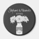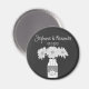 O popular ímã de casamento em forma de quadro de reflexão é feito por meio de um rolo com borda de corações e uma ilustração original de um jarro de pedras de moda segurando flores brancas de crisântemo e um coração personalizado com as iniciais da noiva e do noivo, com efeito de giz. A tipografia timística dá ao imã uma aparência casualmente elegante. Itens de coordenação também disponíveis. Alguns gráficos por clipartSingles na loja etsy.com
