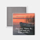 O ímã cristão de citações de escrituras representa uma fotografia natural que inclui um barco e um esgoto com um belo pôr do sol ouro sobre a água. Apresenta a Bíblia Verse Matthew 4:19, "Jesus disse, "Siga-me, farei de vocês pescadores de homens."_