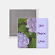 Um ímã elegante com drangeas mauve com folhagem verde brilhante. Uma doce mensagem de Joy, Peace and Love. Um jardim excelente ou ímã floral.