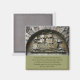 Uma imã de geladeira com uma pintura de pedra de O Mayflower, encontrada em um Jardim Elizabetano no histórico Barbicano de Plymouth. Os historiadores locais acreditam que provavelmente não foi esculpida muito tempo depois de ter velejado em 1620.
