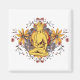 Buda ouro senta-se em meditação segurando uma tigela com as duas mãos contra um fundo floral de flores bonitas! Buddhapatra Mudra é uma das mudras identificadas com Shakyamuni Buddha.