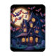 A imagem mostra uma casa assombrada estilizada à noite. A casa é alta com telhados pontiagudos e várias janelas emitindo um brilho amarelo, sugerindo luz interior. Ao redor da casa estão numerosos morcegos em voo contra um céu escuro. No primeiro plano, há um cemitério com lápis de tombaria, adicionando à atmosfera estranha da cena. Esta imagem é interessante devido aos seus elementos temáticos comumente associados ao horror ou ao Halloween e à sua vibrante e escura paleta de cores que estabelece um humor assustador.