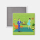 Este Meio século Modern Casal Magnet parece uma cena de uma comédia romântica. A design de arte minimalista ao estilo de 1960 apresenta um casal de desenho animado atraente desfrutando de uma noite romântica em casa. A sala sofisticada destaca uma parede verde de pedra com um fogo em chamas na lareira. Os fornos na sala incluem uma cadeira laranja, salgada com bancada correspondente, um relógio vermelho, starburst wall, um monitor amarelo, sputnik, e uma mesa lateral laranja, que abriga um gravador verde e portátil. No chão ao lado da mesa final, um registro de vinil pode ser visto saindo de um cobrir de álbum de kitschy. No centro do chão verde, há um tapete grande, retangular, lacrimogêneo. No meio da cena, temos um casal muito sofisticado. Há um homem suave em um terno azul real, camisa branca e gravata arco azul. O homem alto, escuro e bonito está olhando para seu adorável companheiro. A elegante mulher cabeleira está vestindo um vestido de aqua flouncy. Cada um deles segurando um vidro de cristal martini com uma azeitona flutuante. Saúde! Aqui está a noite perfeita em casa!