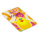 Pintinho feliz sobre fundo colorido, ilustração de desenho animado