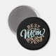 Design de ímã de cozinha que é perfeito como um presente de Dia de as mães apresenta arte de palavra "Melhor Mãe Nunca" em tom e azul pastel, sobre fundo preto