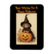 Uma imagem adorável e vintage de uma garotinha vestida de bruxa, com uma abóbora sorridente, aparece neste ímã flexível para o Dia das Bruxas. Com a mensagem "Melhores Bruxas para um Feliz Dia das Bruxas", este ímã fofo pode ser usado para uma decoração em casa ou no trabalho! Também pode ser usado como um pequeno presente para o feriado.