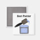 Uma lata de tinta azul e um pincel largo de tinta com tinta azul nas cerdas. Excelente para um pintor que você conhece...