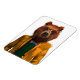 Esta design apresenta um retrato de ursos vestidos em óculos e jaqueta.