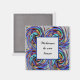 Este ímã vibrante e brilhante apresenta espirais e espirais de azul e cinza. O quadro no centro fornece um fundo sólido para o seu texto de boas-vindas para o novo membro da equipe. Todo o texto pode ser personalizado rápida e facilmente para atender às suas necessidades. As cores sólidas de fundo também podem ser ajustadas se desejar.