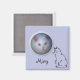 Foto redonda Quadro personalizável Pet Memorial Frame uma foto de um amigo especial e crie uma memória carinhosa. Este gato temido imã fotograma é perfeito para seu felino favorito. Ele tem um buraco redondo para adicionar a foto do seu gato e você pode digitar o nome do seu gatinho embaixo da fotografia. O desenho de tinta apresenta um gato sentado. Disponível em azul pálido e calmo com um quadro de aparência prateado.