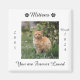 Honre seu querido animal de estimação com este imã personalizado memorial de animais de estimação. Esta design está completa com o nome do seu animal de estimação com duas pegadas, as datas que viveram e as palavras "Você é Amado para sempre". Se quiser um ditado diferente, poderá substituí-lo pelo seu próprio texto personalizado. Esta design também vem com um espaço para adicionar uma foto do seu gato.