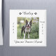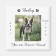 Honre seu querido animal de estimação com este imã personalizado memorial de animais de estimação. Esta design está completa com o nome do seu animal de estimação com duas pegadas, as datas que viveram e as palavras "Você é Amado para sempre". Se quiser um ditado diferente, poderá substituí-lo pelo seu próprio texto personalizado. Esta design também vem com um espaço para adicionar uma foto do seu cachorro.