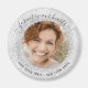 Um simples e elegante imã de fotos memoriais. Um fundo metálico prateado falsa, uma armação branca, brilhos falsos. Personalize e adicione uma foto e detalhes. Texto preto: para sempre em nossos corações.