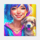 Christmas ornament. Menina de anime castanha bonito e cabeleira com um cachorro que Ai gerou trabalho de arte. Bonita para uma adolescente ou adolescente que gosta de anime.