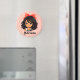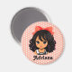Adicione um nome a este imã de garotinha fofo. A garota tem pele escura, olhos castanhos e cabelos castanhos com arco de coral.