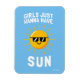 "Meninas Só Querem Ter Sol" gráfico solar desenhado por Criativo mostra o sol sorrindo e vestindo óculos de sol! Isso faz um presente excelente para a família, amigos ou um presente para você mesmo! Este gráfico engraçado é um excelente adicional ao estilo de qualquer um. Criativo é um criador líder e licenciador de designs e propriedades originais e tradicionais. ©LCT Creative. Licença de bCreative.com