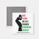 Imagem impressionante do Mês do Histórico Preto com TEXTO PERSONALIZÁVEL. Design mostra meio punho de energia e SIM POSSO FAZER TUDO ATRAVÉS do CRISTO que é baseado em Philippians 4:13. O texto é datilografado a vermelho, preto e verde (cores de bandeira pan-africana), e no fundo há uma mensagem PERSONALIZÁVEL que diz "Celebrando a História Negra", onde você pode substituir pelo seu nome ou texto do alternativo. Este imã do Mês da História Negra é uma forma excelente de espalhar sua mensagem, especialmente durante a temporada do Mês da História Negra, e pode ser dado a amigos e clientes como presentes de favor em suas festas e celebrações.