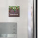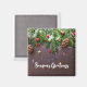 Magnet com fotografia rústica de uma mesa marrom de madeira com pinecones, agulhas de pinheiros, neve e Enfeites de natal. Festivo e adorável.