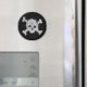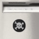 Crânio pirata e ossos cruzados em tinta confusa. Arte negra e branca, em t-shirts, capuzes, cartas, presentes.