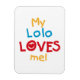 Meu Lolo me ama T-shirts, fatos-chave, cartas, adesivos, canecas, bolsas, ímanes e muito mais com um design de texto azul, vermelho e amarelo colorido.