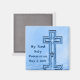 "Minha Primeira Comunhão", e a data, ímanes de cor azul. Design de arte original com uma cruz especial com rajada estelar refletida nas ondulações pacíficas abaixo. Altere facilmente a data e você pode personalizar com um nome também. Lembre-se deste dia sagrado especial com ímãs para sua família e amigos. Veja adesivos correspondentes e outros em cores rosa, e também cores douradas e marrons na loja de placas MVDesSignes.