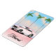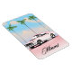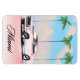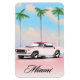 Poster de viagens do Sol Rosa Miami, apresentando um carro muscular retrô-americano contra o pôr do sol da noite.