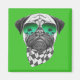 Este design apresenta um retrato de um pingue-pongue com óculos escuros e um cachecol preto e branco com verificação.